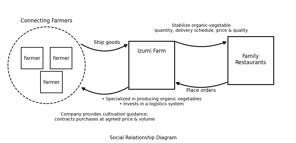 - Các bên liên quan: Nông dân ký hợp đồng, Nhà hàng gia đình, Công ty Izumi Farm, và hệ thống Logistics.
