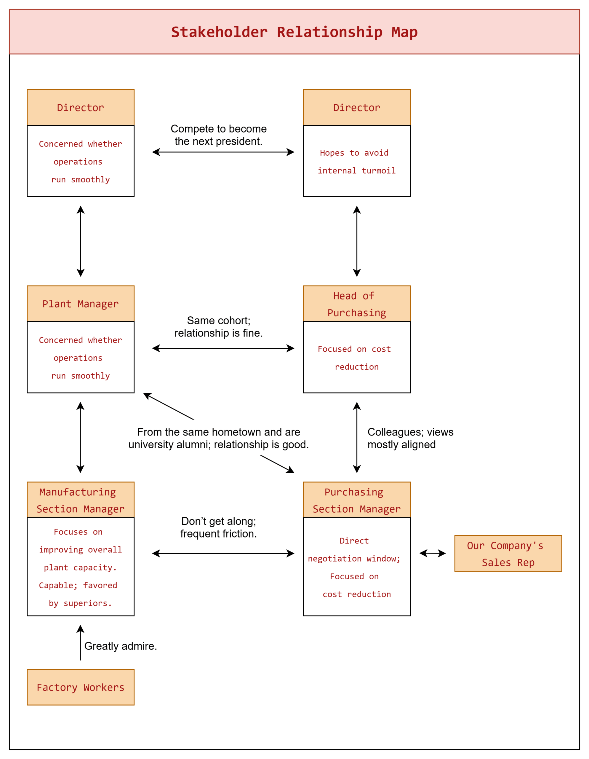 Trong bất kỳ dự án hay cuộc đàm phán nào, thành công không chỉ phụ thuộc vào người ra quyết định cuối cùng, mà còn phụ thuộc vào mạng lưới ảnh hưởng phức tạp xung quanh họ. Sơ đồ quan hệ giúp vạch ra tấm bản đồ quyền lực này.
