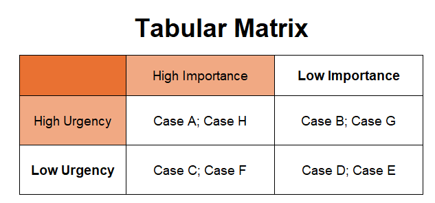 Giá trị Hành động: Sự phân loại rõ ràng giúp định hình hành động minh bạch. Chẳng hạn, trong quản lý công việc, ma trận Quan trọng/Khẩn cấp (Importance/Urgency Matrix) giúp quyết định thứ tự ưu tiên: hoàn thành công việc quan trọng cao/khẩn cấp cao trước, sau đó ưu tiên các công việc quan trọng cao/khẩn cấp thấp. Điều này loại bỏ sự do dự trong việc bắt đầu công việc và nâng cao hiệu suất.